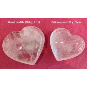 Coeur réalisé en Cristal de roche, comportant des inclusions blanches tels des nuages.
